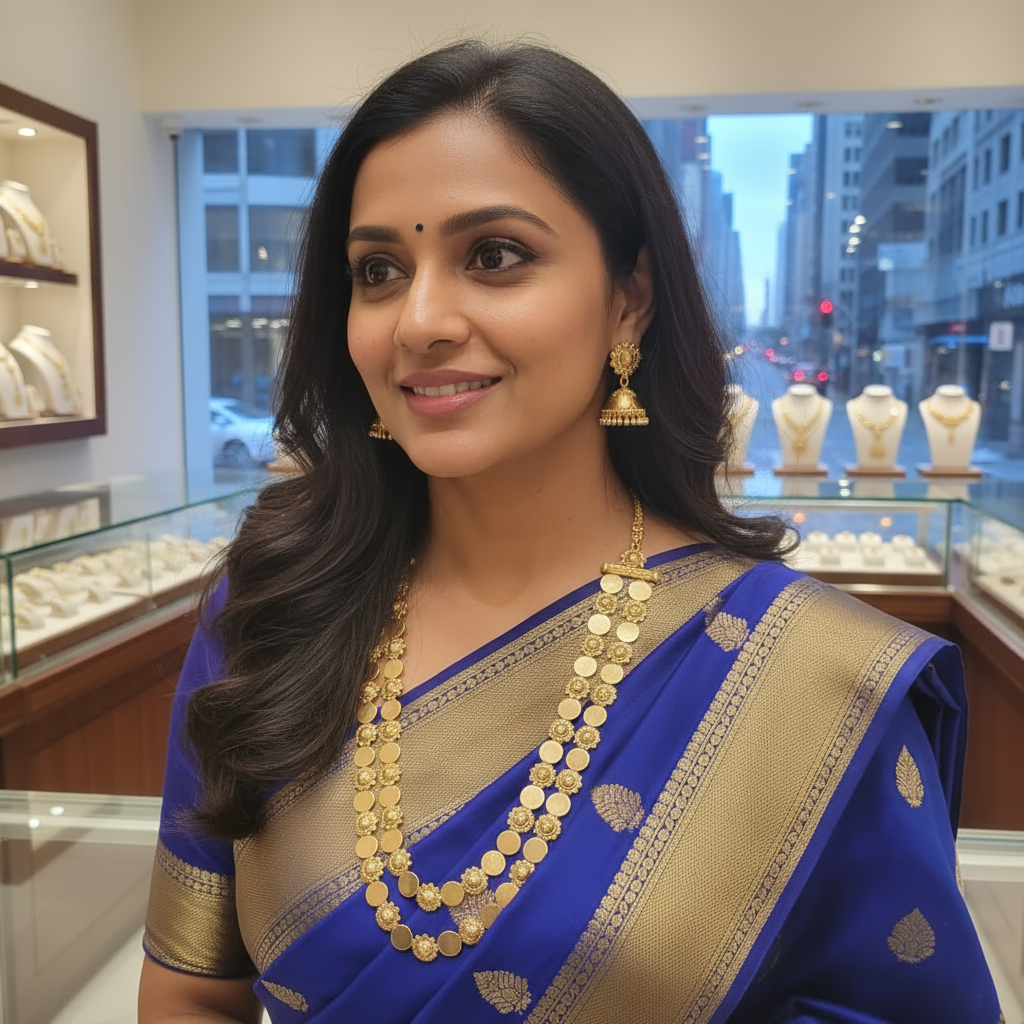 This necklace is just perfect for the festive season! The finish looks elegant without being over the top, and it pairs beautifully with the set mundu I got !