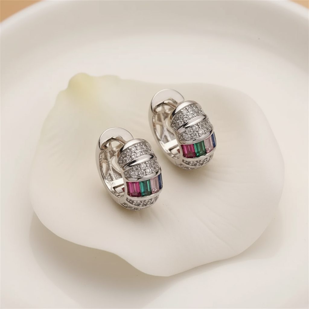 Contemporary gold and stones earring