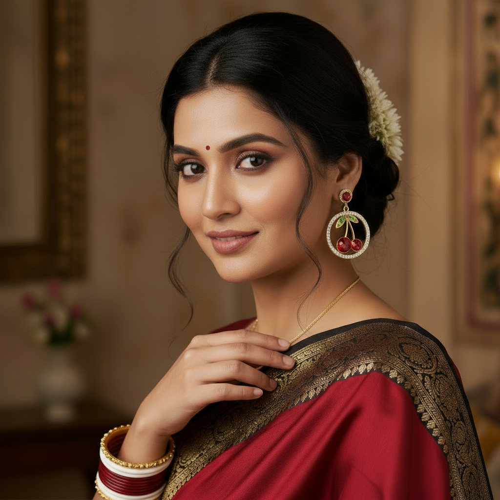 Contemporary Red Ruby Cherry Earrings