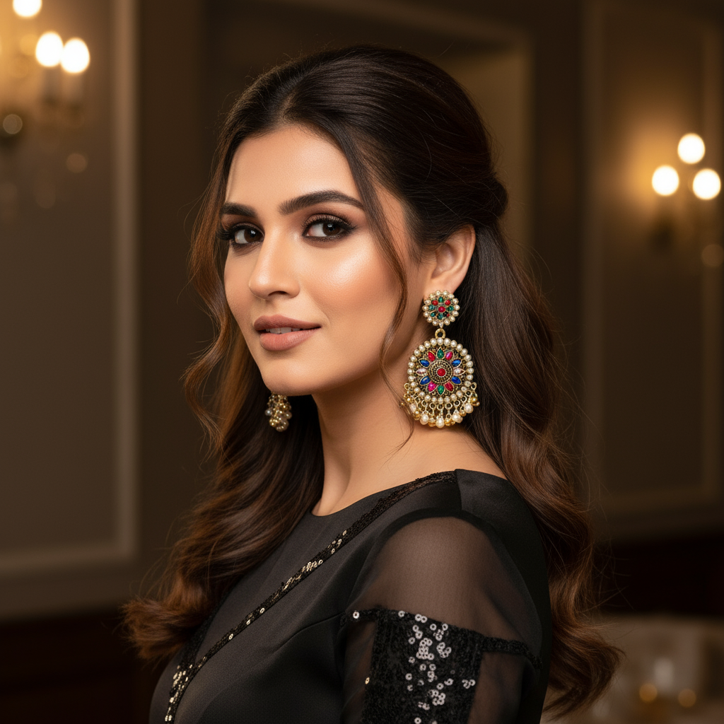 Indian Retro Vintage Hoop with Art Stones & Beads