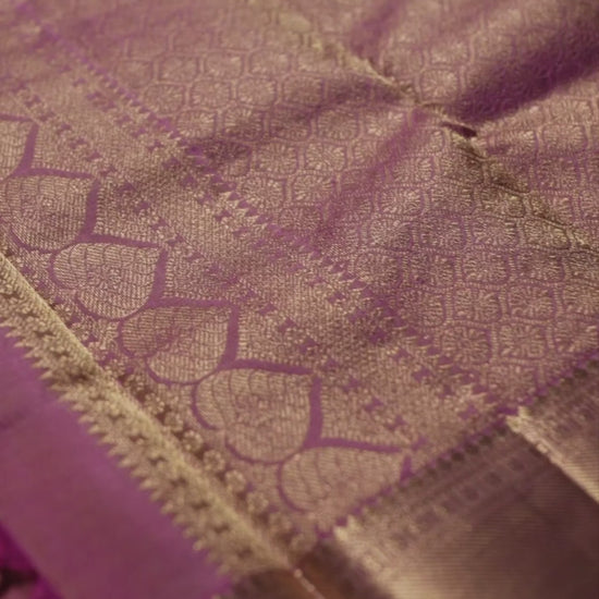 Radiate elegance in this authentic Kanchipuram silk saree, a masterpiece of traditional craftsmanship and timeless beauty. The saree features a graceful off-white body, beautifully complemented by a vibrant pink and rich golden zari border and pallu. The intricate weaving and lustrous finish highlight the opulence and artistry for which Kanchipuram silks are renowned.